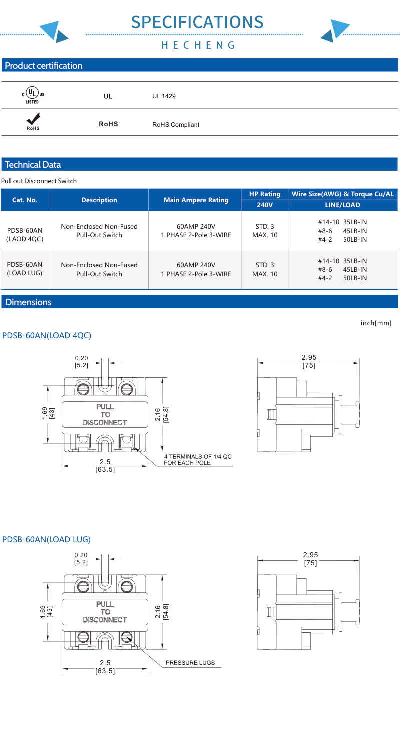 Modelo: PDSB Pull-out Disconnect